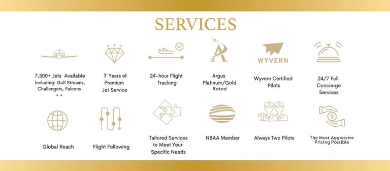 Every partner we work with meets the most stringent safety standards in private aviation, including Wyvern certification and ARGUS ratings. Peace of mind is part of the luxury.